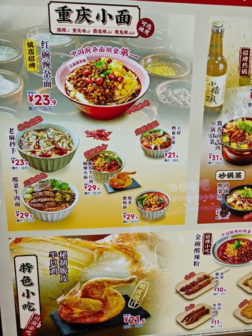 紅碗豌雜麵 / 金碗酸辣粉 / 大勺肉醬酸辣粉 / 鍋巴土豆 / 茉莉冰粉 / 酸菜牛肉麵
