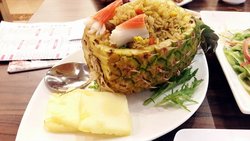 这次去避风塘点的原只菠萝海鲜炒饭味道很不错噢,炒饭是盛放在一只菠萝壳里面的,看起来外表一般其实炒饭里面的配料很丰富,像是都有蟹肉棒,虾仁,鱿鱼片,玉米,葡萄干等,值得一提的就是炒饭里面还放了菠萝肉一起炒,吃起来味道酸酸甜甜的也很入味很香。 查看更多
