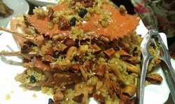 位于新百八楼,环境蛮好的,适合请客吃饭或者小情侣,港式的菜品为主,推荐炒蟹和烧腊拼盘,炒蟹是用的梭子蟹,很大一只,切好了裹了面包糠炸过之后再炒的,外面很酥脆,里面蟹肉十分鲜嫩。烧腊拼盘里面有叉烧肉和烧鸭和卤味,比较喜欢叉烧,肥瘦相间,酱料是甜甜的,有一点桂花的香味,配着吃很开胃。