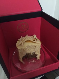 从网络上订的,感觉服务态度很是好,在送货之前还电话通知,确认送货地址,外送人员很是准时,先点一个赞。 订的榛子慕斯巧克力蛋糕 榛子慕斯巧克力蛋糕,包装很是精美,感觉像一个艺术品,蛋糕下面还有刀叉,设计的不错,蛋糕很是不错,味道细腻,甜度适中,最底下还有脆脆的米果似的巧克力,巧克力浓度很高,味道很是浓郁,货真价实。 价位适中,很是方便。