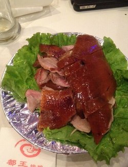 其实不太清楚都王烤鸭有什么来头,之前只听说过鸭王?后来在网上看到有团购,就团了。烤鸭味道不错,水平和大鸭梨、金百万差不多,肉质稍微有点柴,皮还是很好吃的。其他炒菜也都不错,宫保鸡丁分量很大,吃了不少也没吃完。服务还可以,就是有点忙不过来的样子,结账等了好一会。