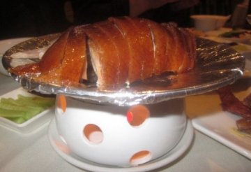 位于北四环鸟巢东边的都王烤鸭店,烤鸭的水平真是一流的,不愧是专营烤鸭的店家。168元一只的烤鸭都是现烤现吃,厨师现场现片鸭子,所以趁热吃的时候,鸭皮特别脆香,鸭肉也是瘦嫩,肥不腻,我个人认为沾不沾酱料,口感都十分香美,因为鸭子本身的新鲜,让鸭肉的烤香味儿扑鼻,再加上饼被烙制得薄、软,一口一块鸭肉饼尽显北京传统烤鸭的风范。