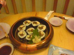 久仰大名 垂涎已久 美味的食物让我不后悔特地驱车前往 !!!提前过情人节!!本想给个大满贯 可是被那恶劣的就餐环境给破坏了!!! 进门就要脱鞋 这是他家的规矩 当我们刚进门准备脱鞋时已经被旁边2名男人已经脱了鞋的脚给熏到了…@_@没想到吧台的位置他们又坐我们右边…一阵阵晕眩的恶臭不断袭来…我们暗搓搓的平移了2个位置后…顿感空气”清新”不少…好在之后坐在我边上的是个姑娘…窃喜不少言归正转 说说他家的菜吧~海胆刺身造型很漂亮 个头超级大 比一般日料店里的海胆大2-3倍 口感很新鲜 我嫌他们现磨的芥末口味不够重 服务员给我条状的..够辣!!!配上刺身才好吃嘛 嗲的来飞来飞去~~牡丹虾 又一庞然大物 虾的个头和我大拇指差不多粗 虾头可以免费再炸 炸过的虾头又香又脆 非常好吃!!生鱼片拼盘别小看中午的定食哦~里面的刺身量也非常之大 特别是那三文鱼 非常厚实 一片相当于别的店的2片吃起来灰常爽!! 吃个1-2片就已经很饱了~~牛油果手卷鲜美的手卷有大块的牛油果和虾 配上好吃的酱料~简直太完美了!!!蔬菜色拉怎么能有那么好吃的色拉!? 玉米非常甘甜 黄瓜清脆爽口!! 主要我要的千岛酱才是美味的核心~~烤年糕糯糯的年糕烤成金黄色~外面包着层海苔~口感是外脆内糯~火炙三文鱼腩寿司其实第一轮点单已经吃的很饱了….这是第二次点单加的 想想不枉千里迢迢来一次 一定要把想吃的都吃过~超大一片细腻肥嫩的三文鱼腩铺在饭团上~用喷枪炙烤下~入口即化….太完美了!!!吃过他家的后 以前吃过的其他火炙三文鱼腩寿司都是浮云啊~本来还想再点些其他烤物吃吃~当我正享受火炙三文鱼腩寿司的时候被左边新的一股味道又熏晕了…让我不再有食欲。。。。。拍拍屁股 扶墙走人……这顿饭吃的我很饱..非常的撑..登老了..一个月内应该不会再想吃日料了!!!PS:饭后的红豆汤很好喝~…查看更多