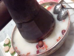 第一次是慕名而去的,听说他们家的火锅是那种传统的老北京式的碳烤的火锅,而且上面还有景泰蓝一样的花花,很漂亮,感觉吃下来味道也还是不错的,和一般的火锅比起来吃起来更有感觉,中间是那种像烟筒一样的碳烤锅,很喜欢,另外,他们家的羊肉不错,很喜欢查看更多
