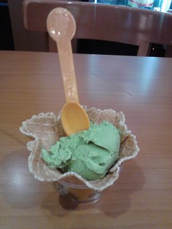 酷圣石的抹茶味冰淇淋还是挺好吃的,之前吃过其他口味的,觉得偏甜了些,抹茶的吃起来不那么甜腻。店员挖好冰淇淋球,在操作台上弄好,这次我选了华夫碗,没有要求华夫碎混在冰淇淋里,这样卖相比较好。        抹茶的味道蛮浓郁的,华夫很脆不过有点小甜。        这家酷圣石的店面比较宽敞,坐着挺舒服!价格么还是小贵滴,偶尔吃吃啦。Read More