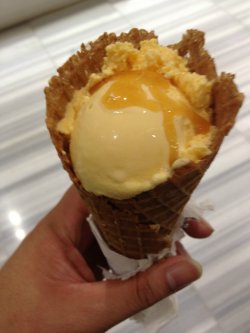 这家店开在西藏中路268号来福士广场B1楼,地方蛮好找的。酷圣石的服务态度一直都蛮好的,所以路过的话,基本都会选择他们家的冰激凌吃吃。这次选了芒果的冰激凌甜筒,因为是甜筒,所以看不到店员在台面上拌冰激凌的样子了,有点小遗憾。芒果的冰激凌球味道还是很不错的,芒果味道很浓郁,不是特别的甜,口感还算细腻。上面加了点焦糖,味道就更赞了。特别推荐他们家的甜筒,甜筒烘焙的正刚好,甜甜脆脆的特别的香。总的来说,他们家的冰激凌口味蛮多的,选择度很大,偶尔吃吃还是很不错的。查看更多