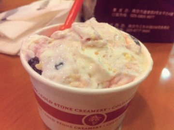 【环境】店名很显眼,虽然我一直不明白酷圣石和金色的石头有什么关联;店堂挺大,有地方坐着吃; 【菜品】各种各样的冰淇淋和配料,感觉很像DQ。那天买了一个大杯的巴黎草莓香颂,尝了尝,除了甜就是甜。真心不觉得有什么特别之处; 【价格】小杯30,中杯40,大杯50,快赶上哈根达斯咯;