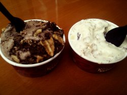 这里的酷圣石人气一般般,但是冰激淋的味道很不错,而且几种口味混在一起的感觉很棒。不过一定要拌得均匀才好。比较起来,更喜欢的是抹茶味道的,比较清新的抹茶味道,加上杏仁,感觉既有了坚果的香脆,又有冰激淋的清凉。还有致命巧克力~真的很难以抵挡巧克力的诱惑。查看更多
