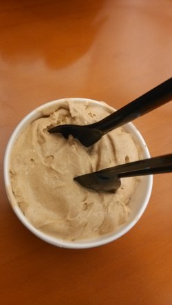 有一次母亲节带老妈去尝鲜的,因为是第一次吃,感觉很新鲜,在众多口味中徘徊不定,小哥很不错啊,不论我们想尝试哪个口味,都马上用小勺子挖一小口送到我们手上,这服务,还真对的起这个价位!最后选择了咖啡味和卡布起诺的,加了脆饼,还看了一个表演,就是小哥站在相对一个有距离的位置把冰淇淋球抛到操作台上,绝对惊险!说回产品吧,原材料好,做出来的东西都好吃,咖啡味的很香,但又不会很苦,卡布起诺的略带点可可味,又不会很甜,加上脆饼搅拌在里面一起吃,也不会觉得腻!而且这个份量也足哦,比起某品牌的小球。。。。。。查看更多