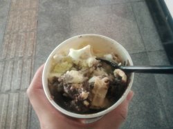 今天吃的,学生证可以买一送一,和妹妹一起去的,选了一个草莓的一个榛果咖啡味的,草莓的有点太酸了,还是喜欢咖啡的,加了奥利奥和布朗尼,味道很好,最喜欢就是布朗尼了,而且买一送一的,中杯还是蛮划算的呢~冬天吃冷饮爽啊~查看更多