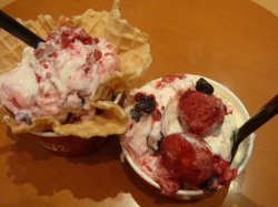 跟朋友去蓝色港湾玩,看见这家店,顺便进去歇歇脚,我要了一个大溪地香草燕麦,要的都是水果,草莓,蓝莓,和树莓,冰激凌超赞,奶油很足,虽然外边很冷,可是吃着冰激凌没有冷的感觉,几乎没有冰,奶油多,化的很快,就是蓝莓都被冻成了小冰球,服务很好,点了冰激凌,一会服务员就端来了热水,说是太腻,喝点热水吧,感觉真的很贴心,查看更多