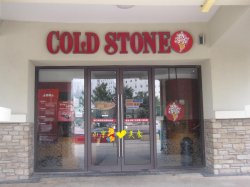 Cold Stone的创始人,Donald and Susan Sutherland 夫妻,1988年找到了他们真正内心想做的事,就是在那时,他们希望呈现世上最好的冰淇淋的激情驱使他们在美国亚利桑那州的Temple开创了第一家酷圣石冰淇淋店。现在,Cold Stone在日本及韩国登陆后已经产生了剧烈的反响,总共在全球已开幕超过1500家门店,到今天酷圣石中国大陆区域门市已超过50家,在上海、北京、天津、杭州、苏州、深圳、济南及南京提供给冰淇淋爱好者最专业及最高品质的冰淇淋体验。  Cold Stone店内所贩售的冰淇淋都是每天在店铺内新鲜制造,并且在独具创新的花岗石调理石板上,根据顾客自身喜好,在冰淇淋中拌入各种水果、坚果、饼干、蛋糕等馅料,变换出上百种、上千种的「客制化」冰淇淋。喜欢变化的冰淇淋爱好者,一年365天都可依当天心情点购不同组合的冰淇淋。更让人惊喜的是,消费者在等候冰淇淋之余,店员会唱歌给消费者听,甚至秀一段甩冰特技表演。为消费者制造快乐,传递Cold Stone品牌所标榜的冰淇淋体验(Ultimate Ice Cream Experience)。冰淇淋店“永远是女人的最爱”,尤其一到夏天。到了蓝色港湾,看到水池就能看到酷圣石了,店面很醒目呀进店后有店员接待,看着各种口味的冰激凌和搭配的佐料,真的很诱人呀店员还帮着倒了白水,嘻嘻活动开始后店员端着一盘子的冰激凌让我们猜口味,所有的冰激凌全是白色的,口味真的很难分辨~DIY过程中店员一直很细心的交每组人员,所有人做冰激凌前必须先洗手冰激凌柜里面口味很多,如果你对哪个口味的冰激凌感兴趣,店员会拿小勺让你尝一下,如果觉得这个口味好就可以做了 把冰激凌弄成一个球放在操作台上,中间按一个空隙,里面加入自己感兴趣的料,我最喜欢加杏仁、核桃这些干果了,然后把加入东西和冰激凌一同翻炒,时间不要太长,华夫是店里先做的,脆脆的,我喜欢,可以把冰激凌放入华夫里,也可以直接放入碗中,这样就做好了~大家吃着自己做的冰激凌格外开心查看更多