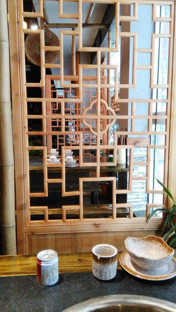 地方还比较好找,就在加气站旁边的二楼上,木质的长板凳,灶式的桌子,还真有种老火锅的感觉,店内没有空调,但是有风扇对着吹还是不怎么热,蒜是放在小缸里的,有点大块需要自己捣一下,选的微辣鸳鸯锅,味道还是挺浓的,菜品的分量还是蛮足,也挺新鲜的,麻辣牛肉外面裹的辣椒和花椒太多了,牛肉吃起来有点老,因为是中午去的银耳汤什么的都没有,服务员态度还是蛮好的,过来收盘和下菜都挺勤的,只是有几个服务员应该是新来的,有很多事都不是太清楚。