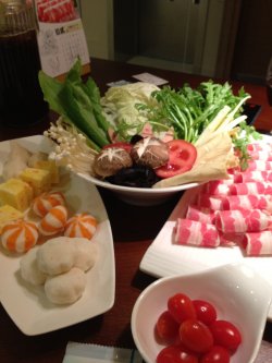 碰到一群老外 不过他们吃的是点餐 我们吃的是火锅 店长态度不错 根据我的要求换了一桌 然后说这个火小等下我们吃起来不方便 又给我们换了个~ 锅的调料确实放多了点 不过最后还补了一个 可以回家再吃一次我觉得白汤也不错 骨头的 够鲜美 辣的也比较够味 不过我不如姐姐能吃辣所以是多白少辣就觉得他们家的自助调料 东西少了点 4个人弄出来的东西都差不多 就是花生酱的比例多少的问题总体不错 很满足啊 他们家的肉实惠 大块大块的 价格也就27左右 这个肉吃的爽啊查看更多
