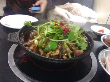 去的时候人挺多的,环境一般,声音挺吵的!要了一份牛腩煲,中辣的,味道不错,牛腩很有嚼劲,就是有点嚼不动,呵呵!给的量也挺足的!