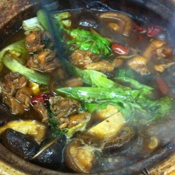 这个招牌在上海是到处可见,人均30元基本可以搞定,鸡公煲的味道都差不多的,无非就是肉多点少的说~和同事中午随便吃吃~点了个中份的,肉还算多,蛮嫩的,酱汁味道偏辣,吃点肉之后涮了生菜、面筋、冻豆腐这类吸汤水的菜,还蛮好味道的~…查看更多