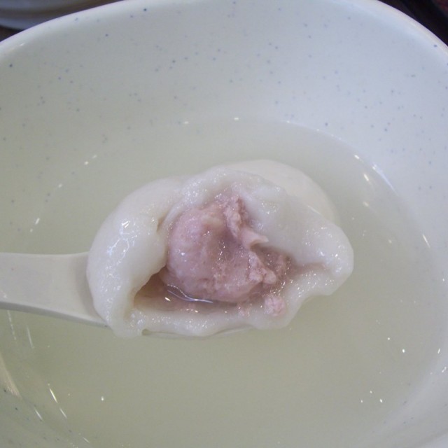 很好吃的汤团哦~~价格就是偏贵了点哦,爱吃鲜肉汤团呢~汤团的皮子蛮糯的~里面有肉汤汁哦~蛮鲜的还!肉还算蛮大的!菜肉汤圆也蛮香的呢~一般吃个六元就饱咯~十几块吃的还是蛮满足的!