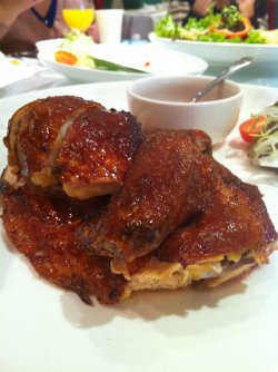 超級愛的一家越南菜餐廳,既然來了上海,怎麼樣也要去探店一次,等著港匯的遲遲不開,只能先來國金解解饞了。烧鸭胸虾片:(推荐指数:★★★★) 口感很丰富的一道菜,鸭肉、菠萝还有虾片外加泰式甜酸酱,第一口咬入的时候,肉质的鲜嫩,酱汁和菠萝的酸甜还有虾片的香脆,充斥着口腔。 南乳烧鸡:(推荐指数:★★★★★) 最受欢迎之一,虽然鸡并非很大,但是重在质量。鸡的外皮烤得香脆,肉汁封锁,嫩滑无比。将南乳汁适当的淋在鸡肉上,增加了一丝口感的同时更体现了鸡肉的鲜嫩。 查看更多