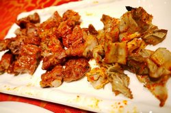 新疆餐馆的羊肉可能是喜欢吃新疆餐的食客们的大爱,因为象手抓羊肉、烤羊肉串等羊肉类制品中的羊肉都是十分鲜美、而且没有任何膻气,最重要的是新疆式的制作方法,完全激活了羊肉本身的鲜美,大块朵颐地吃羊肉,是在新疆餐馆里最美的享受。吃羊肉,配外焦脆里软香的烤馕,然后再配一道炒片汤,酸甜解腻,而且有干有稀有肉有主食,完全是完美的营养组合。查看更多