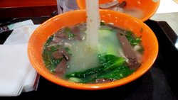 某天和朋友来逛街,在美食广场的中部位置,看到他家排队,而且还上过北京电视台,朋友就说他家一定很好吃,我就不太信,然后我就去买了木桶饭,她在原地排队等粉丝汤,价格13元不贵,东西料很足,关键是味道超好,我尝了下她的,立刻毁了,呜呜,鸭血很嫩,汤很鲜,味道真心是我迄今为止吃过的最好吃的一家,一点不腥,超级赞,推荐大家来尝尝。