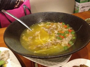 冲着他家粥来的,先说说海鲜粥吧。因为里面加了鲍鱼仔,虾和干贝,虾好像有调过味道,背后的筋都挑掉的,这点店家还蛮周到。两人份的粥里,虾的数量还挺多,干贝也挺新鲜,粥很浓稠的,味道不错。这边照例给了两份酱料和香菜,就是价格比小贵了些,不过海鲜量也的确多了不少。酸汤肥牛和别家味道不一样,别家的一般都是很酸的,但是他们家的酸汤肥牛实在是很“清淡”啊,有一点甜,还是酸点的带味,实属另类。上汤豆苗,22元一份,味道还不错,清清淡淡的,符合晚上清淡饮食的需求。虽然环境普通,有机会还想来试试其他菜,过去还挺方便的。…查看更多