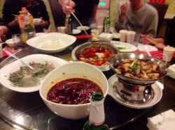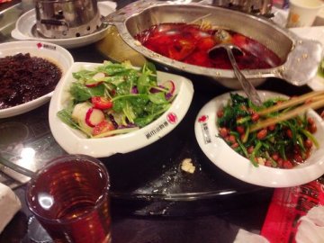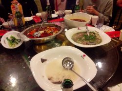 在金簋簋街小山城,店子挺大的,是一个火锅的连锁店,店员很热情,点的菜多了也会告知。这个店的食材很新鲜。牛蛙锅是招牌,也是鸳鸯的,辣锅的部分煮牛蛙,蛙肉鲜嫩,块儿大,清汤的部分白嘴喝都有很浓的鲜味。鸭血也推荐,是那种很鲜的那种,红红的一大碗,口感顺滑。