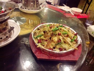 话说,那是一个下着大雨的下班后的晚上,里面狂堵车,实在是受不了饿了,于是毅然决定下车,跟朋友二人到车站旁边的这家店吃饭。当时就是想吃点儿热乎的,所以点了热腾腾的烤鱼。不过这里好像是以火锅为主,所以刚坐下的时候,服务员直接就给了火锅的菜单,再询问下才又拿来点菜的菜单。不过菜单上的图片拍的很好看,看起来特别有食欲。烤鱼味道不错,辣辣的就是我喜欢吃的味道,难怪好多人一去簋街就来这家店,果然名不虚传,就是价格还是有些小贵。当时拍了些菜的图片,可是时间过去太久,现在在手机里也找不到了,打算下次再来的时候尝尝火锅,肯定味道也不错~