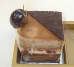 就在君悦一楼进门的右手边,也没招牌。店面不大,可是布置得很精致。较暗的灯光。店堂不规则地放置着一些展柜,在灯光的衬托下闪着光。与五星级的饼屋相匹配。展柜中主要是小点心类,也有些巧克力。左手最里面是蛋糕柜。上面是大的蛋糕,下面是各种蛋糕的切块。它家的蛋糕论公斤,不按体积算。一般是1KG一个。蛋糕的样式还是蛮诱人的,较为真材实料。在提拉米苏和黑森林二个之中犹豫了一下。看外观,更爱黑森林。可提拉米苏最受好评,最后还是选了提拉米苏。买单可以刷卡。装蛋糕的盒子是纸盒,两个一装的,里面有格子。可是没给我勺子。服务员虽礼貌,但不热情。提拉米苏:巧克力真是多。表面盖着,上面插着,连容器都是巧克力碗。蛋糕非常软滑,奶味十足,香味溢满口腔。巧克力味道不错,不是那么滑腻,但口感一般。感觉还行,就是价格贵了点。看有一男士买一共六个小蛋糕。啊,那个收蛋糕的人真幸福啊!查看更多