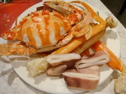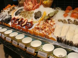 这里的价格贵了点,但是东西很全的, 这里的环境也还是不错的,不算华丽但是很大,服务挺好的,这里的海鲜的东西多,但是新鲜度一般的,刺身的很多的都是冻的,水呼呼的,三文鱼还可以,比较爽口的,螃蟹还是不错,有的还挺肥的,就是冷冷的不香,虾也很多,比较新鲜的,其他的就很一般了。查看更多