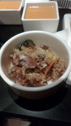 釜山料理就是韩国料理,还是中午以白领居多,两个人比较的合算哦,因为中午的商务套餐,2个人只要50元,套餐是6选二的形式呢,6份主食可以任选2份,4分饮料也可以任意选择2种50元两份的商务餐真的非常的划算哦,我点了韩式牛肉石锅拌饭,端上来的时候热气腾腾的,下面是米饭,上面是一片片清晰可见的牛肉片就是肥牛,还有胡萝卜,香菇,金针菇之类的,不过没有放酱,后来叫了服务员,服务员就帮我们洒了很多的酱汁,也好新的帮我们开始搅拌起来了呢!石锅拌饭味道超灵的,肥牛多,鲜嫩的很,粒粒米饭可口鱼排海鲜年糕:其实里面的鱼排吃起来像是与豆腐的味道,没有鱼刺的呢,年糕不会粘牙,而且有弹性,QQ糯糯的,绝对的好吃,我喜欢就是里面的年糕的酱料,稍微有点辣味道,不会觉得有什么鱼腥味,很不错,满满一大份,绝对吃得饱翡翠柠檬:酸甜清爽的饮料,颜色也十分的干净,看着就有食欲,柠檬的清香沁人心脾芦荟蜂蜜:比较的清淡,不会太酸甜,但是蜂蜜的蜜香浓郁,还有芦荟果肉哦还有凉拌菜,中午只要半价,原先26,现在打完只有13元,看着一点点,可真的非常多,牛舌嫩滑,黄瓜爽脆,辣度适中。中午吃饭的好选择,人不多,人多可以吃烧烤呢!查看更多