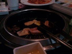 真要晕,中山公园店有2个釜山料理一店二店,怎么区分怎么找呀反正走了好些弯路才找到了这家一店。环境还不错,就是暗簇簇,拍照拍出来不好看。我们是10月底去的当时的优惠券很给力的我们去了6个人可以12元一份点5份特价烤肉还可以一人点一份特价套餐特价套餐包括一份主食一份饮料个人觉得主食套餐的优惠力度一般,特价肉那个是真心划算。我点了鱼饼炒年糕外加一杯山楂汁年糕好辣呀,完全是辣炒年糕嘛,太辣太辣,吃不消。特价肉有羊肉,五花肉,牛肉等等,感觉羊肉的那个味道不错呀,其他就一般般了,特别是牛舌,真叫薄,当然12元一份的特价也不可以要求太高了嘛。只点了一些特价的东西太对不起自己了,于是又加了墨鱼仔鸡翅,牛排等。墨鱼仔鸡翅,烤好上桌的,原来是鸡翅做的像墨鱼仔,不过味道还是蛮好的,蛮香的牛排,卷成一块,48元,价钱便宜来,味道似乎没有想象中的好不够多汁不够嫩,那是香瓮的牛排好吃呢后来还加了一份雪花什么牛肉,那个挺贵的,好像要90元一份,大家都觉得这个才有吃烤肉的感觉呢,没有办法一份价钱一份货。他家南瓜粥还有些小食是免费的,可以无限添加,生菜MS上了2份免费的,再加就要6元还是9元一份了,饭后还一人送一根口香糖。他家服务员态度还可以,但是人手太少明显忙不过来,经常是找不到服务员,更加别提有人帮你烤了。在优惠券的基础上加了不少东西,人均差不多70元,还是蛮划算的,印象里还觉得釜山是比较贵的韩料店看来合理使用优惠券是省钱最好的法宝…查看更多
