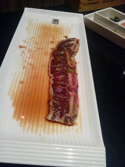 在所有的韩国料理里,釜山料理属于很不错的啦,价格也算公道,两个人点一百五左右就够吃啦,这次点了一个应该是菲力牛排吧,这个味道很不错,一盘里面大概有三块,有点小骨头,咬起来很劲道,而且很香,粘上调料感觉非常好吃。查看更多