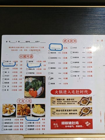 餐牌/外賣紙