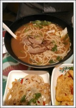 故乡牛肉面 tiantianlan等級42013-04-073 瀏覽 關注 在新中关的地下一层,装修的很淡雅的一家店,白色的桌椅看着很干净,蓝色的顶灯光给人很清爽的感觉。听说店里的服务较差,果然如此,点菜等餐,等找零钱都要自己主动张罗才行,真不知道店里是怎么管理的。点了口碑比较好的故乡牛肉面,面上的很慢,没有菜单上的好看,不过牛肉片倒是蛮多的,炖的软烂入味,形状又没有散掉,肉吃着很香很Q,面条爽滑劲道,就是汤比较少,配菜也比较少。价钱小贵,以后要是服务态度能改善一下就更好了。…查看更多以上食評乃用戶個人意見 , 並不代表OpenRice之觀點。讚好分享故乡牛肉面 钰花溪 https://s.openrice.com/KtbT1m0jzw200檢舉 張貼 評分4味道4環境2服務4衛生3抵食