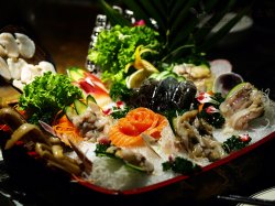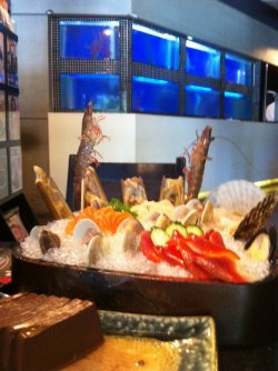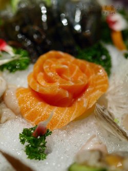 忧郁王子@锅比盆大 ,外面好像叫什么锅比碗大的店也有的吧,这里火锅刺身都有的。海鲜拼盘好大,中间放了多花,本来以为是胡萝卜切的,结果拿近了看,是三文鱼刺身哦。灵的。周围 一圈海鲜生吃和下火锅都可以的。很新鲜的。蛋饺的味道也不错的。查看更多