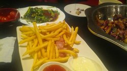 因为以前住在牧电巷,所以这家锅锅香来的比较多,算是熟悉的了。搬家后大概半年没有过来,再次来的时候感觉变化挺大的,增加了八宝粥、水果,锅巴等东西,每个人也开始收了三块钱的餐位费,不过八宝粥的味道还可以。排骨虾以前78的,现在涨价了88块,这次点了干锅中翅、粉蒸牛肉、培根薯条、还有一个木耳,中翅是小块小块切开的,这点算是特色,切开的好处是比较入味,但是卖相就不是那么好看了,粉蒸牛肉还过得去,培根薯条是新增加的菜,以前只在滋滋烤鱼吃过,做的一般,我要批判一下凉拌木耳,做的真的很一般,不知道是不是换了厨师在弄,完全没有以前的感觉了。在点评网上25元抢了100的券,加了两听加多宝一共补了44块钱,很划算的一餐。锅锅香在成都做干锅算是数一数二的了,分店多,而且服务也不错,会常来的。