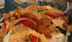 位于安定门繁华地段的一条狭长胡同的中间地带,在张家口饭店的大堂一层,是不是张家口驻京办事处的餐厅不得而知,但是自认为对安定门地段不算陌生的我,还真是头一次来品尝,所以说现在吃饭前如果不在网上找一找,查一查,真是不知道每天会有多少有特色的餐馆再出现。朋友推荐的地方,她来过很多次,自称是她家的后厨房,所以把点菜的任务放心地交给她。夏天吃清淡些在论的,所以她十分熟练地点了好几个素菜品,别说都非常不错,对于我这个食肉之人,能品评佳品的素菜真不多见,沙拉、丝瓜、还有绿茶饼都十分让我满意而且以前从来没有吃过这样清淡可口的菜品和甜品,尤其适合家里有老人小孩的。就是餐厅座位不太多,不知道有没有包间?如果真要带上一大堆人来聚,会不会坐不下?下次我再去实地吃一回看看。…查看更多
