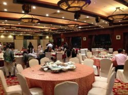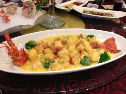 在这里吃过一次祝寿宴。【环境】地处虹桥路宜山路。交通非常便利。地方很也容易找门面大气豪华,老远就可以看到金碧辉煌的“阳光名邸大酒店”几个大字。非常气派。底楼是大厅。整个环境的色调是中式的红色。洗手间也很干净。四楼是包房和宴会厅。每间都有个大气的名字。宴会厅可以容纳十几桌。前面还有舞台,可以供客人进行布置。其实在这里办婚宴也不错。【服务】服务员非常客气。一进门就有人询问是不是有人订过位置。我们的生日宴是在四楼的宴会厅。一路上都有服务生按电梯,引路之类的。用餐的时候,每次上菜都会和客人打招呼让客人小心别碰到。换餐盘也很勤快。也会一直注意客人的饮料是不是喝完,及时询问是否要添加。菜品如下前菜没有拍。有道醉蟹印象好深刻啊。是用大闸蟹做的,肉质鲜美多汁。肥厚饱满。一盆三个,切好盖上蟹盖,造型完美,色香味俱全。热菜分别是:【金牌吊烧鸡】上来好大一个。鸡块切得很大块。鸡肉很厚。一口咬下去,鲜咸口味的。但是又不是很咸。不用蘸酱也很好吃。就是那么大一块鸡,很容易饱。【雪蟹】完全是高档日料店的摆盘啊。下面很厚的一层冰沙足以保持雪蟹新鲜的口感。他们家的蟹都是看起来是整只的造型,其实都已经帮你切好的。这个雪蟹配有好几种蘸酱,芥末酱油,咸味豆瓣酱,辣味,还有种鲜酱油。不过我喜欢沾那个咸味的酱。雪蟹的肉雪白雪白,本身就带有甜甜的口感。新鲜度一级棒。【奶油澳洲龙虾伊面】好像是大型宴会必备的一道菜。龙虾切成很大。一盆上来量也很多。一桌十二人完全吃不掉啊。龙虾上面裹满了甜甜的奶油白脱。容易有腹胀感。不过旁边配的伊面也很好吃。有点硬,不过沾上奶黄色的奶油酱汁味道很意式。如果怕腻的,还可以吃旁边的西兰花【鸡爪顿甲鱼汤】这道汤赞爆了。完全是精华。汤里面没有添加任何味精。是种原汁原味的鲜美。汤头是很清淡的,没有油腻的感觉。里面有很多甲鱼的裙边,完全被炖得酥烂了。由于事先预定的关系,这个汤已经提前煲了很久。营养精华都在里面了。鸡爪也很多。丰富的胶原蛋白【黑椒牛肉粒】黑胡椒味道很浓郁,牛肉粒相当入味。牛肉粒切成大小适中的尺寸。不错。就是当天出色的菜太多。这道就有点被人忽略了。【上汤鲳鱼】这鲳鱼好大,价格肯定不菲。鲳鱼上面铺了层葱。下面的肉吸收了调料的香味,异常鲜美啊。鱼是相当新鲜的。肉很好剔。用调羹一弄都下来了。【叫花鸡】没有人吃。实在太饱了。不过这菜肯定很棒。好浪费啊。【海参】外面围着一圈西兰花。里面是好多好多的海参。海参很糯。上面有点辣椒味。微辣。不过感觉海参本身还是没有什么味道的。【鲍鱼炖猪蹄】我的大爱啊。鲍鱼是本身没有味道的食材,它和什么放在一起,就是什么的味道。通常鲍鱼都是耗油的做法。这里很别出心裁的是和红烧猪肘放在一起炖。鲍鱼上面的刻花就很美貌。鲍鱼嫩嫩的,吸收了猪手的鲜味,同时有解了猪手的油腻。吃完鲍鱼再拿块猪蹄,好满足。猪蹄很弹牙,慢慢一嘴的胶原蛋白,猪蹄还是红烧的最好吃啊!我吃了2个,一点也不油腻的。最外层是西兰花。荤素搭配,健康美味。【荠菜黄鱼丸】这道上来的时候大家都说:啊?是汤圆啊?其实是黄鱼丸。里面没有鱼刺。黄鱼丸非常鲜美嫩滑,伴着荠菜羹,很好的搭配【点心拼盘】这个很有生意,里面有四种点心。我吃的是雪媚娘和萝卜丝饼和蛋挞。雪媚娘一咬一口雪白的奶油。上面有个红色的小点。好美貌的点心。萝卜丝饼里面竟然是番茄酱一样红红的馅料。不过我更偏好传统的萝卜丝饼。蛋挞当中是蛋白,健康又美味,味道也清淡【黄鱼面】大盆的黄鱼面!面条精到。里面好几条黄鱼。作为生日宴,怎能没有面条呢。好吃。鲜美环境也好大气的阳光名邸。给我留下了深刻印象。就是不知道这个多少钱一桌,这里的人均是按照礼金来算的。总之菜水相当出色。就是下楼的时候感觉地板油油腻腻的。好在有“当心地滑”的提示。味道真好啊。满意的一餐。查看更多