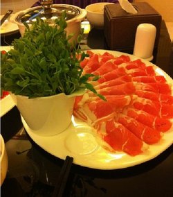 阳坊涮肉以前都要到阳坊去吃的,朋友推荐望京这家说也很不错这家果然也是铜锅涮肉啊,真棒点了羊肉、鸭肠、肥牛和百叶,还有一堆的蔬菜了这个铜锅的就是好啊,涮出来的肉别有一番滋味,羊肉非常的嫩,而且膻味不大,主要还是切的薄厚比较合适吧还有鸭肠很新鲜,放到锅里七上八下啊,出锅后咬起来都咯吱咯吱的,很不错还有这儿的糖蒜也挺有味的,再配上烧饼可是美味啊