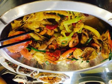 来的早 饭点的时候还没到 所以不用等位置 等点好了菜边上都已经有好几桌了。环境挺好的 看着很干净 最重要的 手机控居然看到墙上偌大的无线网密码 立马来劲了。点里招牌肯定要吃 点了一个肉蟹煲,大份真的很值诶 满满的一锅 调味就是很重要这蟹伴着这特殊的香味 十足的鲜美,锅里的年糕 花菜 鸡爪 都是么么哒的好吃。抱腌菜牛肉 :本来是不太想吃的 因为比较的下酒 朋友点了 ,我就下意识的尝了一口 发觉真的好好吃,牛肉嫩嫩的 抱腌菜很新鲜 不咸 一下子就爱上了。傣家牛肉 是推荐的主食 我是吃大米习惯了 所以钟爱炒饭 ,这份是咖喱与盖浇饭的结合嘛 牛肉依旧嫩嫩的 还有喜欢的青豆玉米 伴着酱很香浓 在家也可以尝试的做下了 。感觉蛮好味道的 以后还要来吃。…查看更多