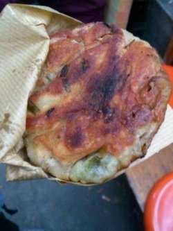 微薄上看到的,说是上海的老式葱油饼,葱油饼我爱的呀,我特地去吃的,真心不错哦,葱油饼很厚,而且是油酥的感觉,一口咬下去,外面脆脆的,里面一层一层的,很好吃,特别香,葱也多,真的像小时候的味道,很自然的口感,样子也很漂亮查看更多
