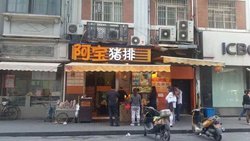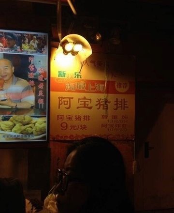 阿宝猪排很多明星来吃过的哦,印象很深刻的就是在广告牌子上面看到老娘舅的照片,蛮有人气的,猪排价格卖的实惠的呀,9块钱一块哦,切好的,肉香的不得了呀,外皮特别的脆口,里面的肉虽然很薄,但是吃的就是一个脆一个嫩。