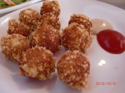 不是很好找,在百联又一城问了保安才知道方向。在侧门的过道里看到招牌,左手边就是了。这边店堂不大,布置紧凑,很有酒吧的氛围,只是空无一人。却被店员告知另一边还有店面,需到那边用餐。原来这家店被商场的入口分割成了两部分。另一边同样不大,典型的咖啡馆的样子。窗子上拉着紫色的窗幔,配着大红色的矮沙发椅。墙上贴着许多英文旧报纸,不是,看仔细了,原来是壁纸。近门处有吧台和红色的高脚椅。角落的天花板上吊着大大的黑色蜘蛛网,爬着大大的黑寡妇。装修得还是较有格调的。服务员是二个较胖的MM。面无表情,公事公办的样子,像是欠了她们什么似的。老妈猪排饭:是较为推荐的菜式,但不好吃。猪排外表较酥脆,肉较嫩。鸡蛋皮摊得很老。米饭不好吃,有一点硬,浇的番茄酱太甜腻。黑椒牛肉意面:汤汁多了点,还有卷心菜在里面。牛肉较入味,较嫩,黑椒味较足。但是没什么香味。芝士薯球:有些炸得过火。土豆泥中裹着芝士,口感较为绵软。还可以。特色色拉:就是生菜+黄瓜+罗卜丝+圣女果+通心粉。可以选不同的酱料,就选了罗勒酱。生菜不好吃,干巴巴的,不是西餐用的生菜,像吃草。奶油浓汤:完全没有浓的感觉。奶油太少,上面浮着一层油,都怀疑是否新鲜。里面有些蘑菇和玉米。难喝。自制提拉米苏:是我吃过的最难吃的。奶油较多,咖啡粉洒得很少。蛋糕颜色说不清道不明,颗粒较贵,味道奇怪。奶油花生冰沙和水果茶:花生冰沙最可笑了,本身味道还可以,但最下面竟然全是冰块,这哪叫冰沙?水果茶的盛具很可爱。是加了西柚和苹果泡的,颜色金黄色,想来加了什么酱,味道过于甜腻,不好喝。这里的菜式价格不便宜,做得又不好吃,实在不会再来。查看更多