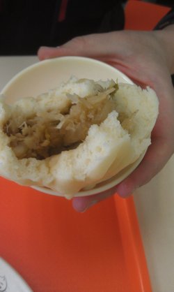 早晨在他家吃早点的人还很多,打包带走的。很喜欢吃他家做的大包子,包子有素馅的,有肉馅的。一般都是吃他家的素馅包子,雪菜的,酸菜的,萝卜的,白菜等等。都很好吃,包子个头很大,皮很软乎,酸菜的有点咸,酸酸的很好吃。馅料的味道调的很好,馅也很多。查看更多