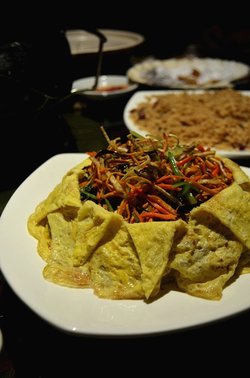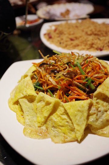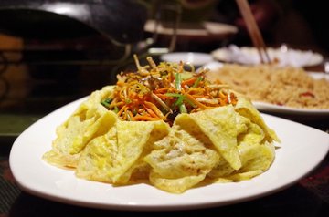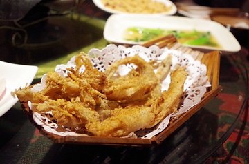 少陵路50号康河丽景3期进去后~右边就是8栋2单元,电梯直达9楼后出门就能看到一个狼头LOGO,这里就是902室了。阿狼私房菜的老板是广东人,所以这里的菜偏向粤菜,但是也有混合了各式菜系的菜品。曾经的阿狼烧烤名气很大,如今老板阿狼做起了私房菜。依旧是大名鼎鼎。房子蛮大的,应该有150平左右。客厅有2个小桌子。中间是功夫茶桌,阿狼首先在这里用普洱欢迎了我。一口沁香醇厚的普洱下肚,听阿狼给你聊聊故事。好好享受这难得的宁静。私房菜有2个包间,适合8-10来人。菜品的上菜速度都很快最先上来的是鸡汤。器皿特别。木勺木碗。非常的原生态。鸡汤也是香浓厚重。冰火两重天:来阿狼私房菜不得不吃的一道招牌。咸甜的咕咾肉一出锅就承装在铺满冰块的器皿内。冰与火,咸与甜。你会在这道菜里找到惊喜的平衡。脆皮烤肉:烤肉绝对是阿狼的拿手手艺。这个猪肉烤的金黄香脆。油气已经被充分烤出所以不腻,上面的皮脆的来跟吃锅巴一样!口感独特。萝卜炖牛肉:绝对不是高压锅压出来的,而是细炖而成。萝卜和牛腩顿的非常软糯,萝卜和牛腩互相吸收彼此的汁水和香味。入口即化,相得益彰。欲火中烧:奇特的名字,你能吃出里面的是什么吗?! 是麻雀腿。肉虽小,却嫩气弹牙。香味浓厚,根本停不下来。六根未净:六种素菜切丝炒成,本是六根清净,但是用了鸡蛋皮包裹,所以成了六根未净。很有意思。椒盐九肚鱼:话说我第一次吃九肚鱼还是在泰式火锅店里面。当时就惊奇于这个煮出来像果冻一样Q嫩的鱼肉。这次的九肚鱼是油炸,椒盐口味。这就是完美诠释外脆里嫩的一道菜了。油条虾:虾肉,油条,粗芹菜。清香不油腻。虾肉很大个,油条酥脆。炸猪软骨:1头猪好像仅有1点点软骨能制作这道菜。不过味道不是太符合我的口味。持保留意见哈。酸梅汤:好像是不是加了可乐?这个酸梅汤喝起来有汽。口感还不错。阿狼私房菜的装潢布置都很粗犷朴实,餐具也质朴简单。但是菜品品质却能说明一切。…Read More
