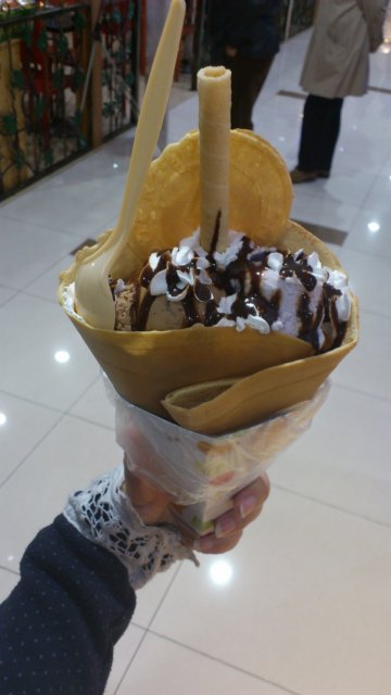 甜品的味道不错。试过这家的香肠鸡蛋可丽饼,还有花生冰淇淋。香肠鸡蛋可丽饼,饼皮做得其实还蛮薄的,里面的香肠和鸡蛋口感也不错。花生冰淇淋,喜欢花生的浓郁滋味,入口冰凉。人均消费在二十元左右,性价比蛮不错的。…查看更多