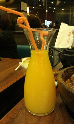 逛大悦城想要随便解决一下,就选了这家店,中午11点左右居然还需要排个队。在门口的位置就把餐点了,番茄米线外加一份阿香原味米线套餐,进店后很快就可以上餐了,速度还是很迅速滴。地址指引:大悦城B1。话说这家店的VI是学长设计的,还是有些好感的说~阿香过桥米线,32米。姐姐点的,本来是计划喝点汤的,没想到汤完全是味精味儿的,累觉无爱。米线没什么味道,汤不好,米线也自然无味。番茄米线,26米。颜色上看起来还是很诱人的,不过这个味道么,实在是不敢恭维啊。调料非常丰富,韭菜、玉米粒、生鹌鹑蛋、火腿、豆皮、黄豆、海带丝、银耳、洋白菜、雪菜和一块炸鸡柳,配一碗细细软软的米线,酸味够了,但香味很欠缺。米线过软,放进热汤里基本就是煮熟的面条烫一下的节奏,毫无亮点。关键是那块肉肉,嚼不动啊嚼不动,还有股油的怪味儿,扛不住了。炸肉串,还不错,快熟产品了算是。肉肉很嫩,有点烧饼里脊的节奏啊。芒果汁,很大一杯,就算是勾兑的也值了,味道浓郁,香精开例会。…查看更多