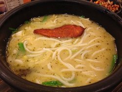 这家店位置不错,在回龙观华联的三层,与回龙观地铁对面那个华联相比较老,所以又被叫做老华联,其实也没有多老了。其他家貌似生意都一般,但是他家人气真心很高。周五的中午来的,12点左右已经坐满了。要了两个过桥米线的套餐,一份米线加上一份小菜再加一杯饮料。过桥米线是那种典型的云南做法,一碗装在石锅里的米线,一碗鸡汤,一堆装着鹌鹑蛋、火腿、肥牛、韭菜、木耳什么的小盘子。这些统统汇聚到石锅里,过桥米线就可以吃了。小菜要了一份豆腐皮,是那种油豆皮。老醋花生米,炸过的花生米,配了老醋味道不错。饮料很大杯,要了芒果汁和酸梅汁,都是兑的那种,不过还不算太齁甜,还可以。查看更多