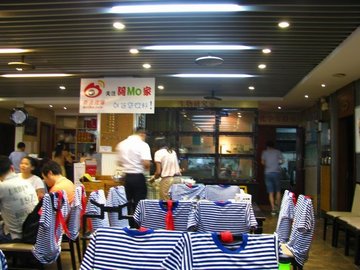 貌似这家名叫阿MO家的餐饮店已经关门了,想来那是2012年的时候去吃过几次,来说说当时的感受吧! 已快而立之年的80后们总被人说成是扭着青春不放的一群,爱玩爱闹有很多父辈们看来稀奇古怪,90后看来傻傻呆呆的想法。不知道阿MO是不是就是其中之一。 沙坪坝区凤天路的美食街上,有家貌似有着古怪想法的阿MO,开着的“阿MO家回忆捌零怀旧欢乐主题餐厅”。 店里墙上张贴着80后们熟悉得不能更熟的动漫海报圣斗士星矢、灌篮高手,以前念书的时候从牙缝里挤出来的生活费,全用来买这些海报、动漫挂历、漫画册了!现在家里还有呢,那时候好舍不得用,纯粹是买回来放家看看,漫画册借同学被弄丢了,还和同学气好久呢!想来那些尘封的童年记忆,一下子鲜活起来。 海魂衫正下装萌扮可爱的最佳利器,这儿,它是员工的制服,是椅套,衣服棉质的体贴更是客人“外套”,穿上它吃完火锅可不会把火锅味带回家。 餐厅还有娱乐区,简单得不能更简单,一台小电视,一台卡式小霸王游戏机,几张黄卡,N多款游戏,怕是会让你玩到不想走的吧! 搪瓷的饭碗、油碟和水杯,导热超快的,盛上热汤立马烫手,有点旧时学校食堂吃饭的感觉,油碟是自助的,这点好,想吃什么加什么料,佐料和平时去吃肥牛里的佐料差不多。 锅中锅的是番茄牛尾双味锅底,乳白色的牛尾清汤,番茄没有看到,有点可惜;红汤锅底开火前被一层牛油覆盖,油不厚只是刚好把锅给糊住了,辣椒红红的颜色一点也不影响。 一上菜立马显得桌面小了点,菜都不够摆了,撤掉渣盘让我们大口吃肉大口喝饮料。藕片新鲜水灵适合小烫一下吃脆的 千层肚 切粗条,肚片烫过后脆脆的,肚条梗子有点糯糯的。 板栗仁精品毛肚 据吃到最后一块海底捞的同学说,煮了几分钟口感还是脆脆,一点也不绵。 耙牛肉 牛肉片确实耙、糯,多在锅里烫会儿,更入味一些会更好吃。 功夫鸡脚 比卤鸡脚要干一些 微辣 蛮开胃的。 酥肉 细条瘦肉油酥咬着还带丝呢!应该出锅后吸过油的,直接用手拿也不会油乎乎的。 菜品走得很快,一轮下来加菜时很多菜已经没有了,红汤锅底味道以辣为主,麻味浅,烫过食材后辣味会淡一些,总体口味较温和;清汤不够浓,一上桌每人一碗汤后,就几乎见底了,加汤烫点素菜什么的,还行。 店里的蛋炒饭做得不错,油份不多刚好,饭粒散疏不干,闻起来,吃起来都香香的!…查看更多
