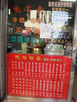 陈佳甜品是厦门的老字号了,在离中山路很近的一条老街上,镇邦路65号,很好找。龟苓膏是招牌,价格也不贵,龟苓膏是自制的,有淡淡的的中药味,挺稠的,应该是很滋补去火,10多块钱一碗,要加蜂蜜,要不然会有点苦,加了蜂蜜很清甜的味道。还有蜜瓜雪蛤,14块钱一份,分量很足,感觉也是很值的。